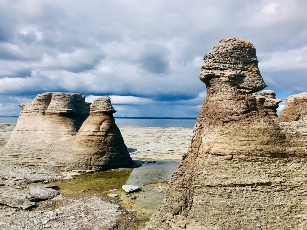 Il y aurait tant à dire sur ces deux jours de découvertes passées dans l’Archipel de Mingan. Je vais laisser parler les images de ces lieux somptueux faisant désormais partie des endroits les plus impressionnants que j’ai pu voir dans ma vie de voyageuse : l’île Quarry, sa tourbière, sa forêt aux allures magiques et ses légendaires monolithes, l’île Niapiskau et sa dame de calcaire, puis la Longue-Pointe-Mingan abritant l’île aux perroquets (ses macareux moine, sa station de phare et ses deux maisons auberges) et l’île Nue, ma préférée, avec ses monolithes grisâtres façonnés par les marées et ses paysages rappelant l’Arctique.